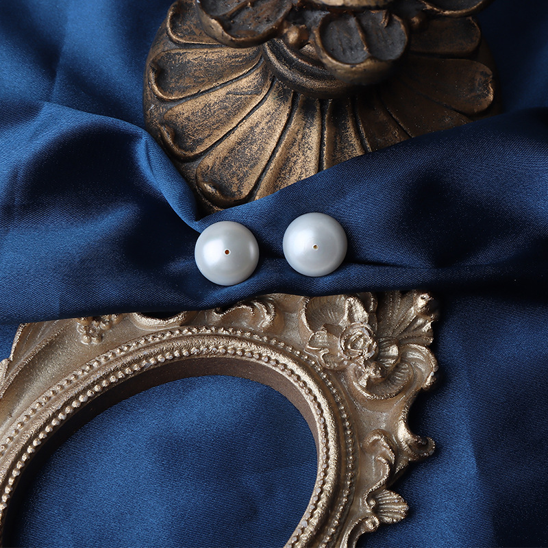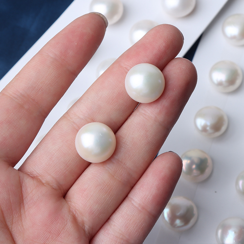 Paar 13,5–14 mm große, kernfreie Süßwasserperlen (Knopfform)