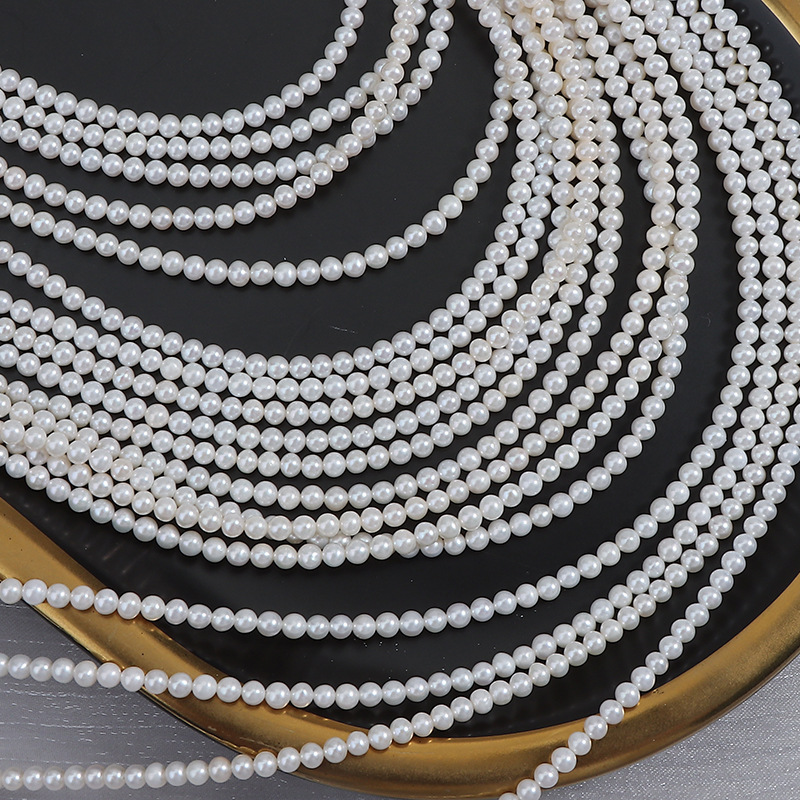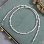 Fotorezension einer Strangkette aus weißen, natürlichen, runden Süßwasserperlen (4,5–5 mm).