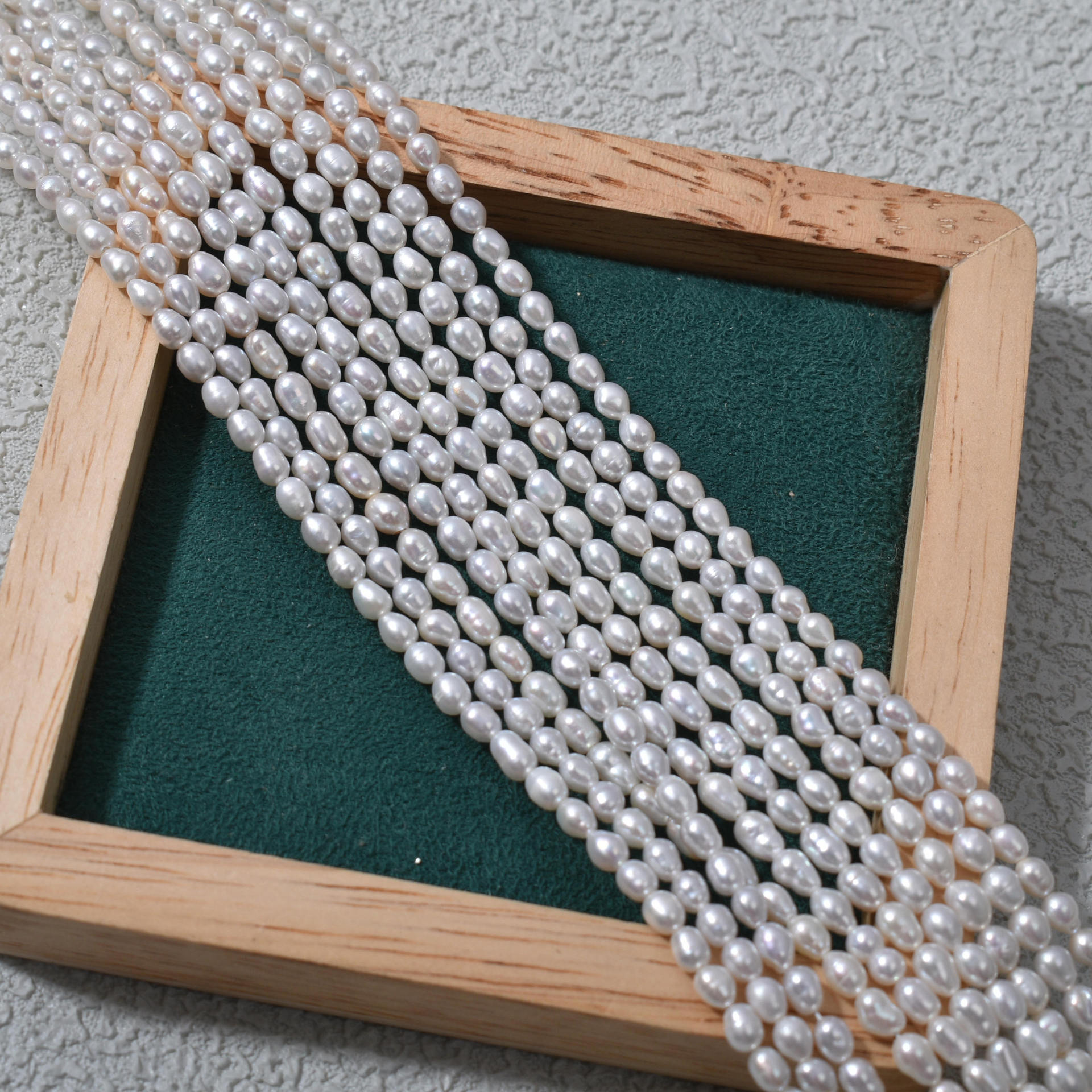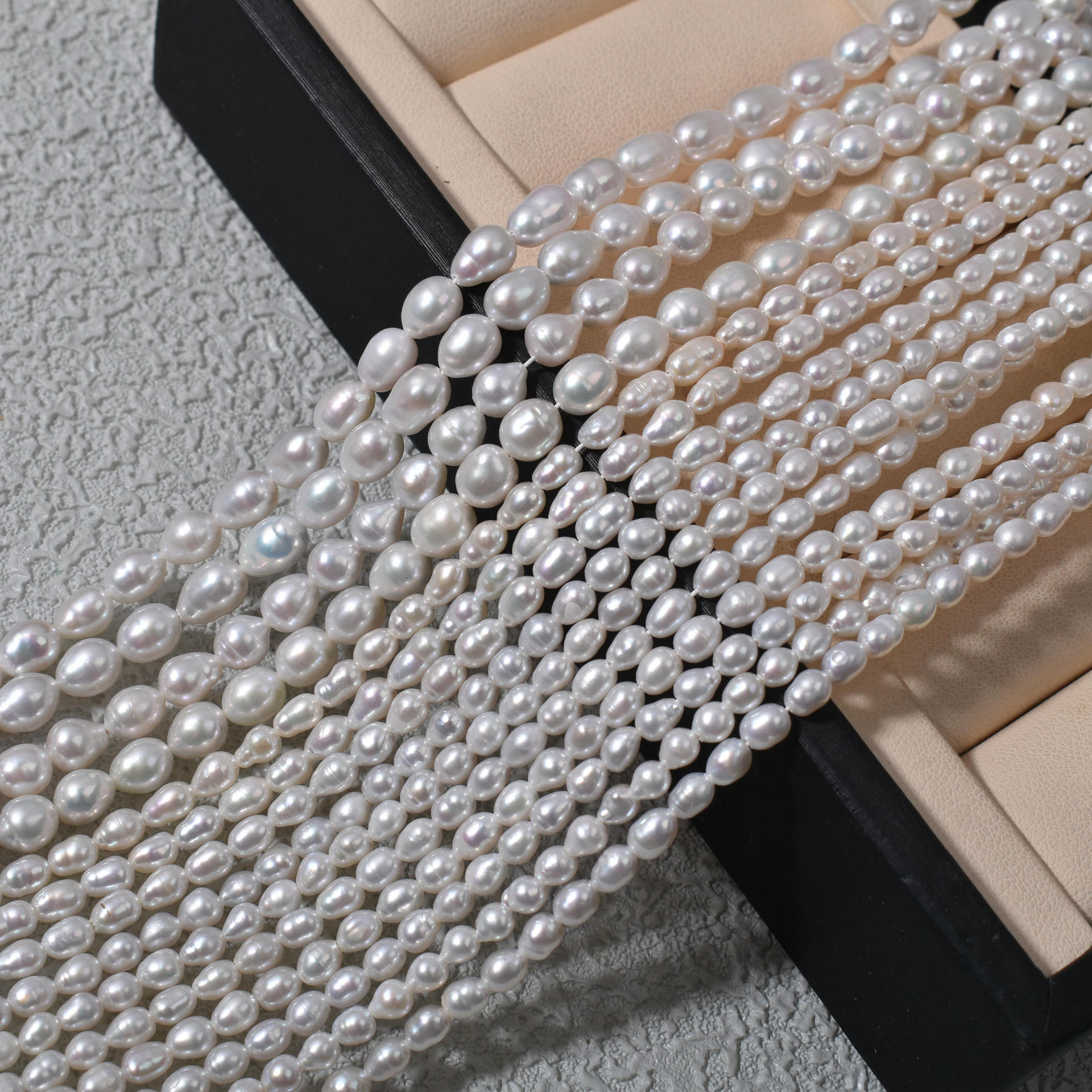 Sehr glänzende, aber dennoch natürlich wirkende Perlen. Sie lassen sich leicht verarbeiten.