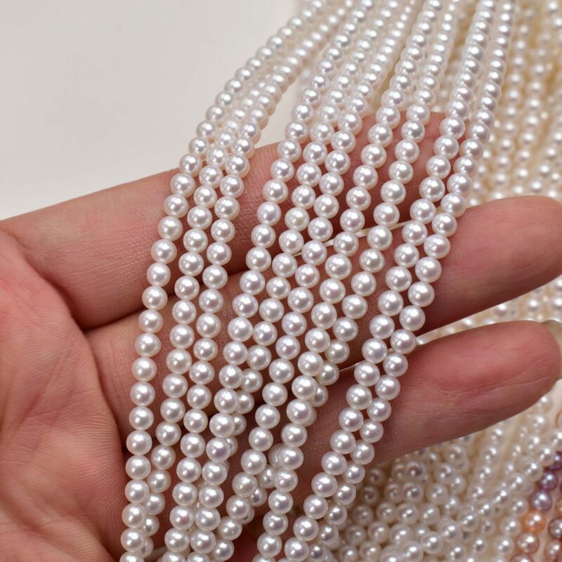 Fotorezension von 3-4 mm großen, hochglänzenden Mini-Süßwasserperlen mit flacher Rückseite