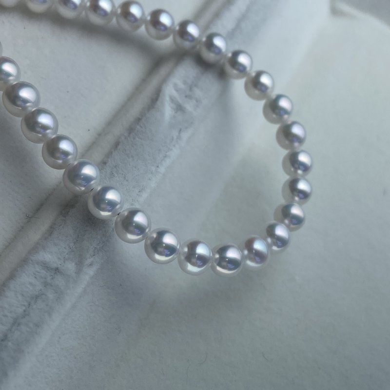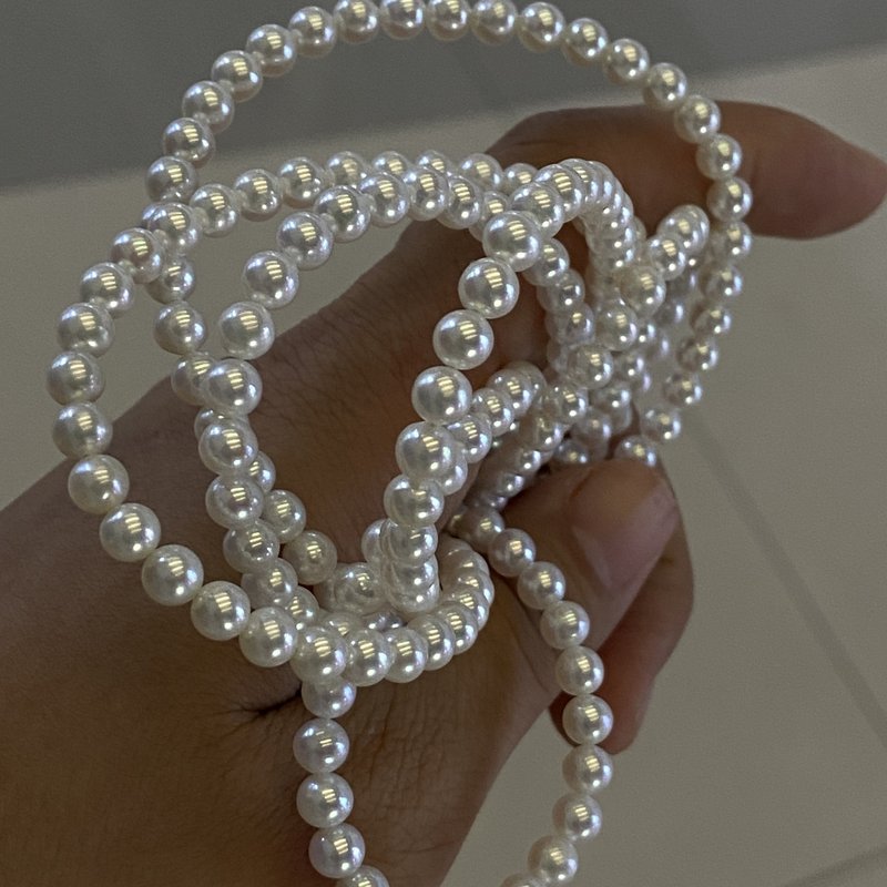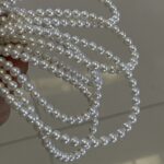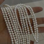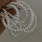 Fotorezension einer Strangkette aus weißen, natürlichen, runden Süßwasserperlen (4,5–5 mm).