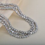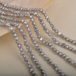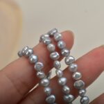 4-5 mm große, graue, hochglänzende, unregelmäßige Süßwasserperlen