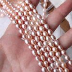 5–5,5 mm große, natürliche, mehrfarbige, hochglänzende Reiskornperlenkette