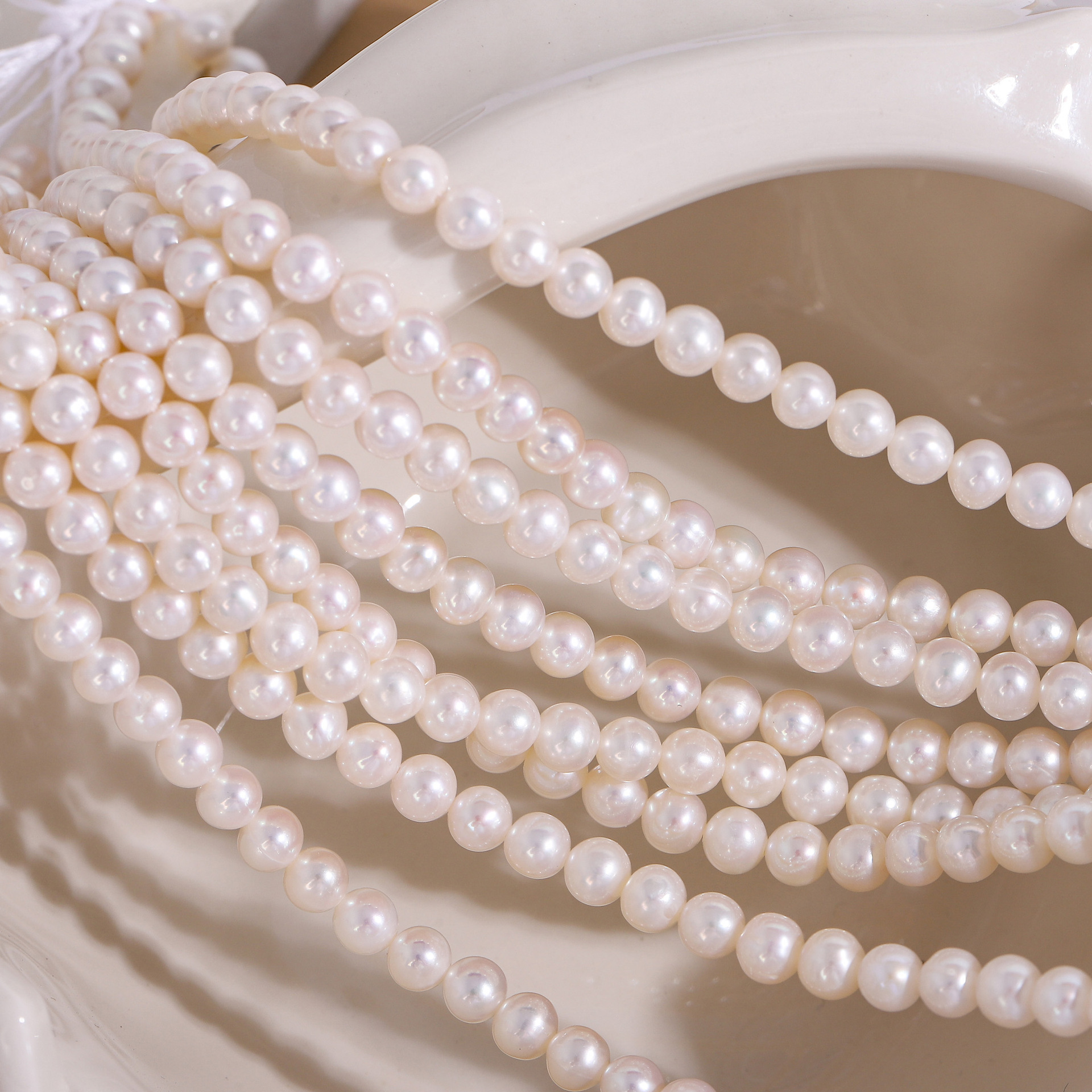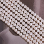 Fotorezension einer Strangkette aus weißen, natürlichen, runden Süßwasserperlen (4,5–5 mm).