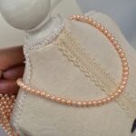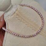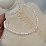 Fotorezension einer Strangkette aus weißen, natürlichen, runden Süßwasserperlen (4,5–5 mm).