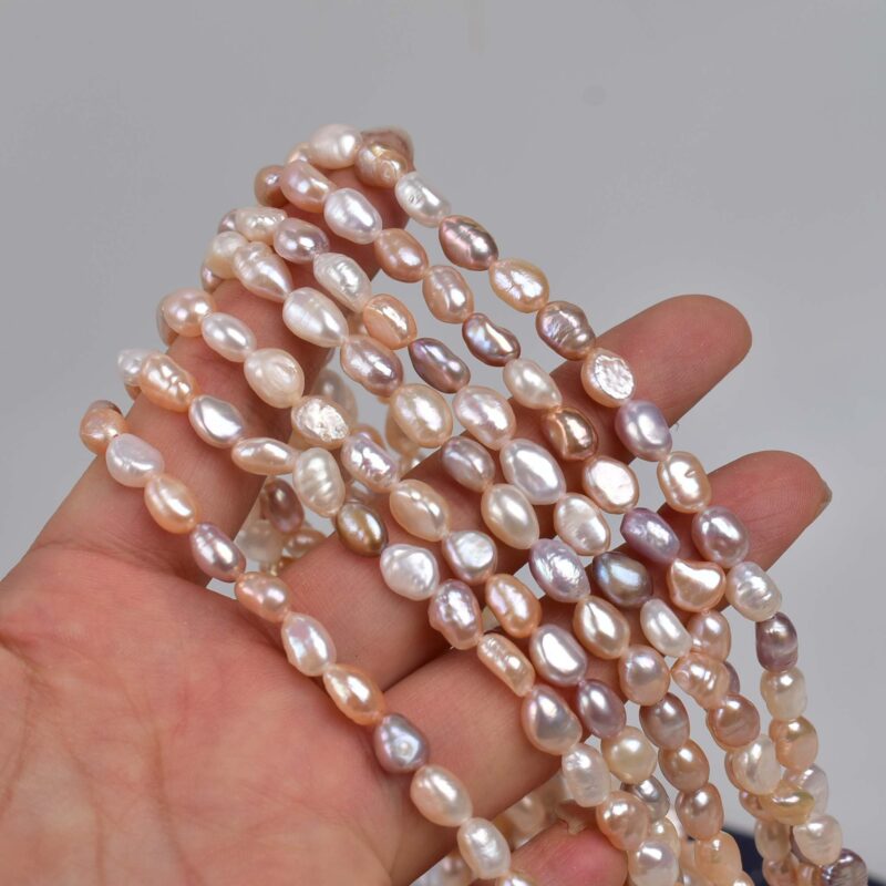 Fotorezension von 8-9 mm großen, natürlichen, gewundenen Süßwasserperlen in Reiskornform