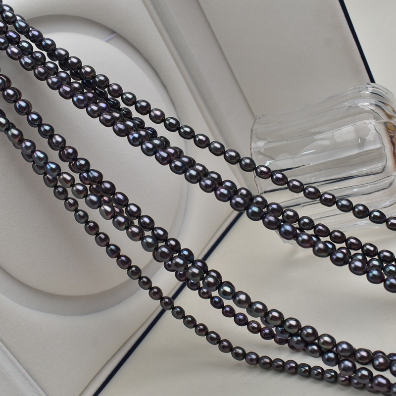 6-7 mm schwarze, natürliche Süßwasser-Reisperlenkette