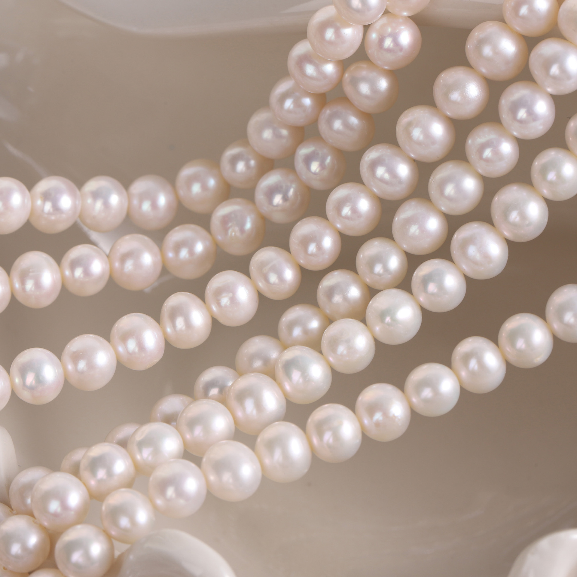 7-8 mm natürliche Premium-Süßwasserperlen mit leichten Makeln, oval