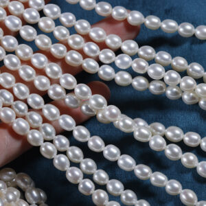 Fotorezension von 8-9 mm großen, natürlichen, gewundenen Süßwasserperlen in Reiskornform