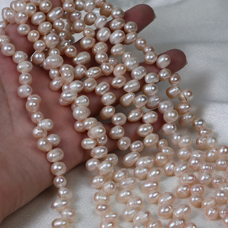 7 mm aufgefädelte, naturfarbene Reisperlen