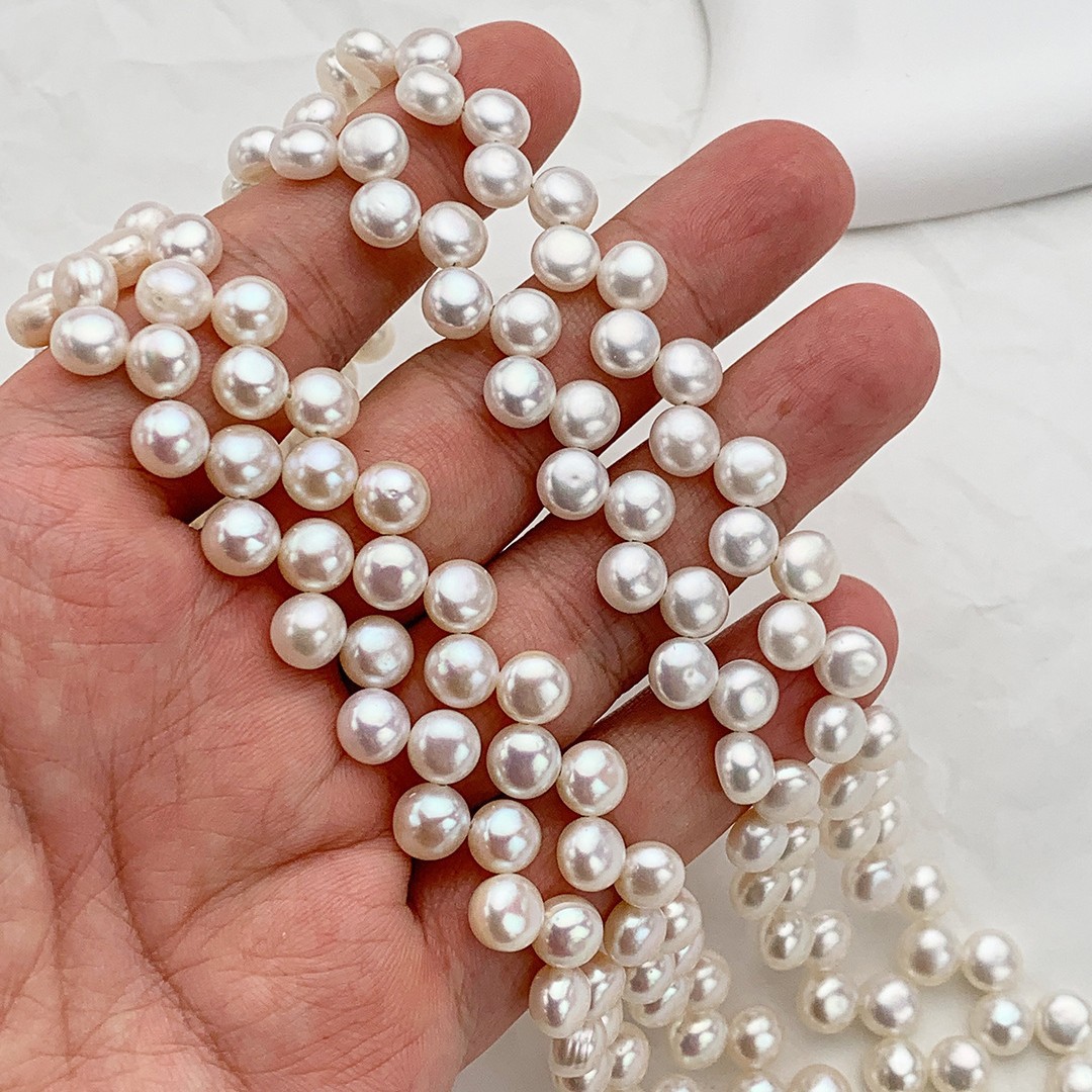 7 mm flache runde Knopfperle aus natürlichem Süßwasser