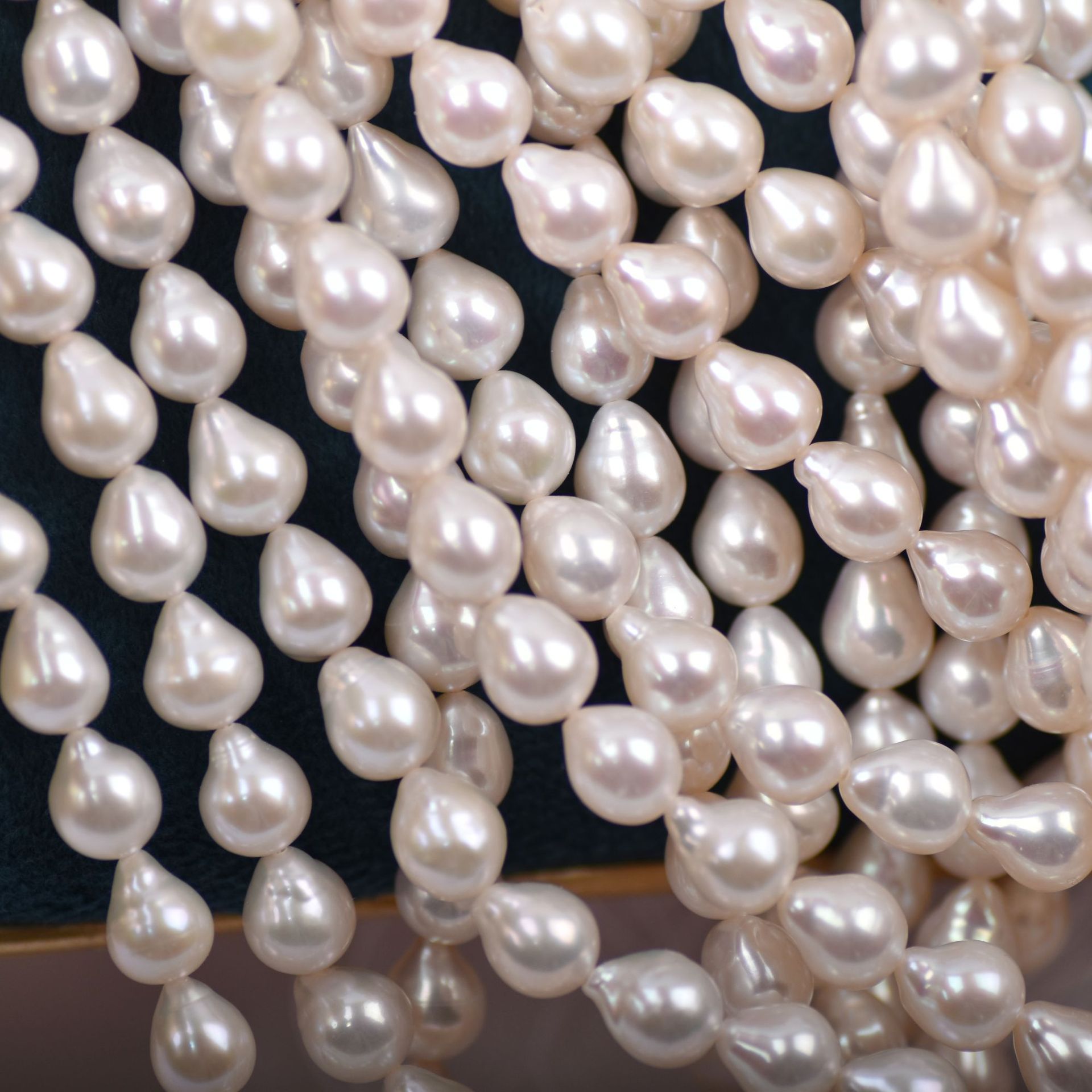 7 mm große, hochglänzende, weiße, tropfenförmige Barockzuchtperlen
