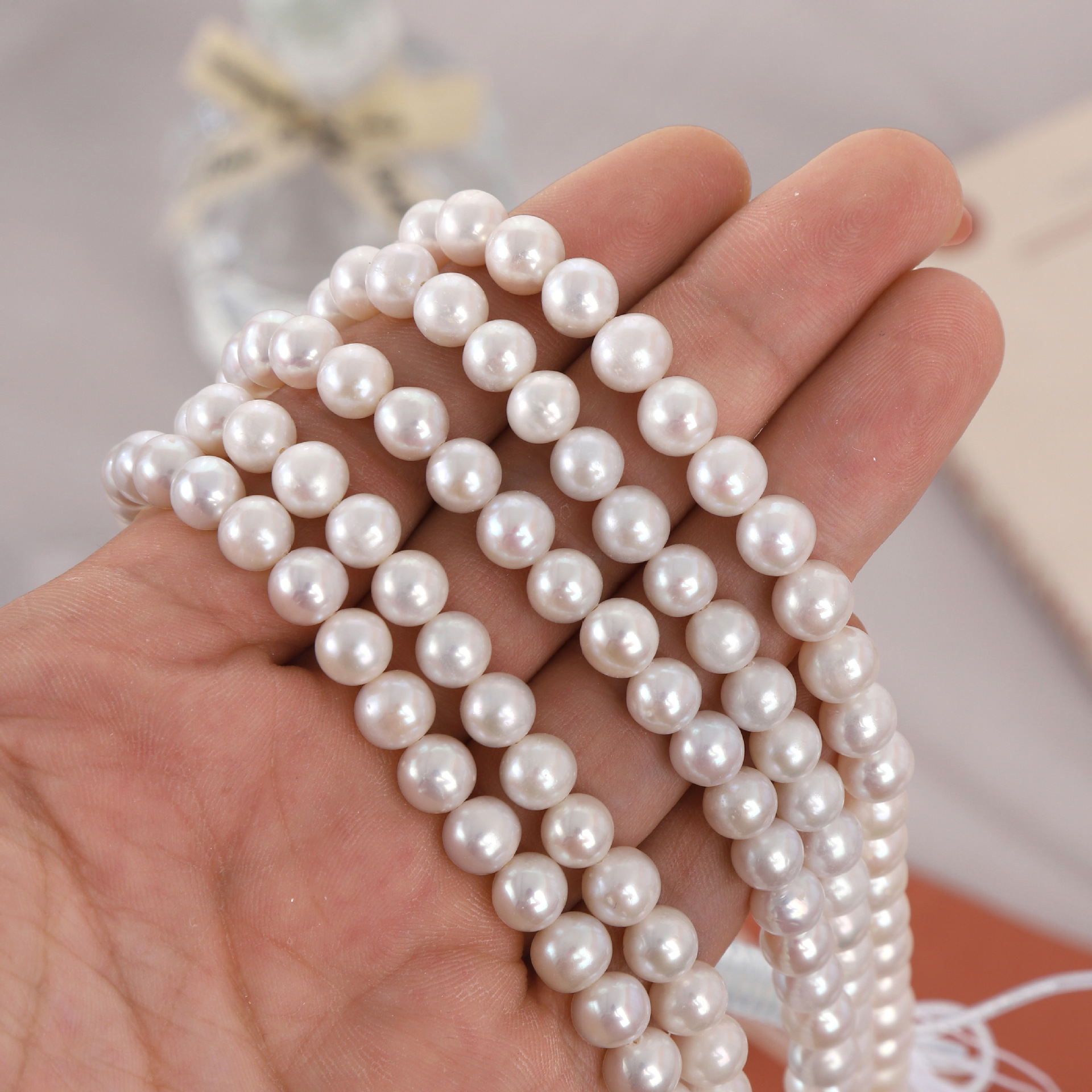 7 mm Hochglanz-Naturperlen, nahezu rund