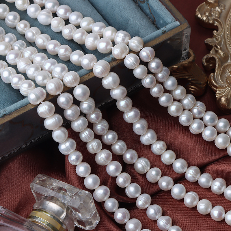 8 mm Gewindekette aus Süßwasser-Keshi-Kartoffelperlen