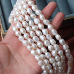 Fotorezension von 8-9 mm großen, natürlichen, gewundenen Süßwasserperlen in Reiskornform