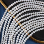 Fotorezension einer Strangkette aus weißen, natürlichen, runden Süßwasserperlen (4,5–5 mm).