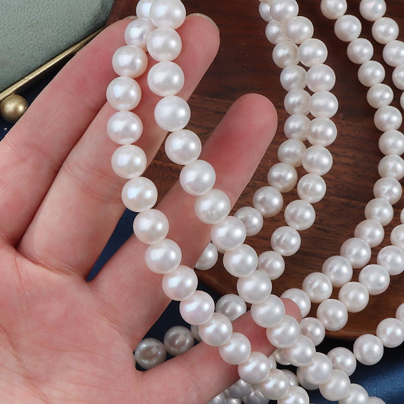 8 mm natürliche, kernlose, runde Süßwasserperlen