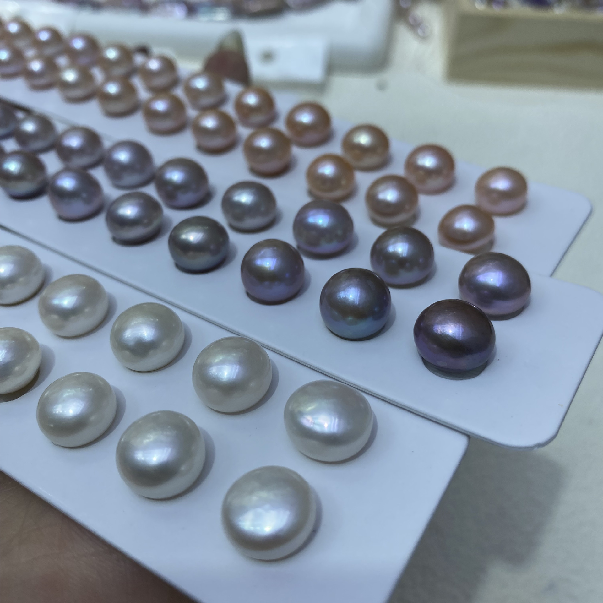 Sehr glänzende, aber dennoch natürlich wirkende Perlen. Sie lassen sich leicht verarbeiten.