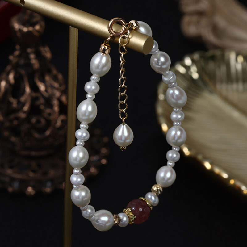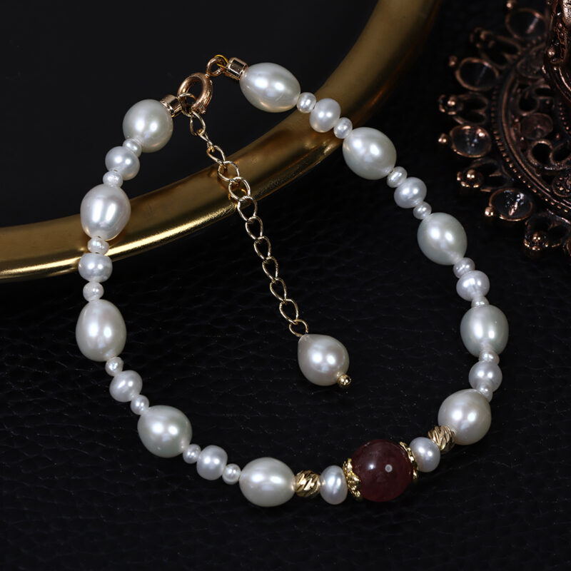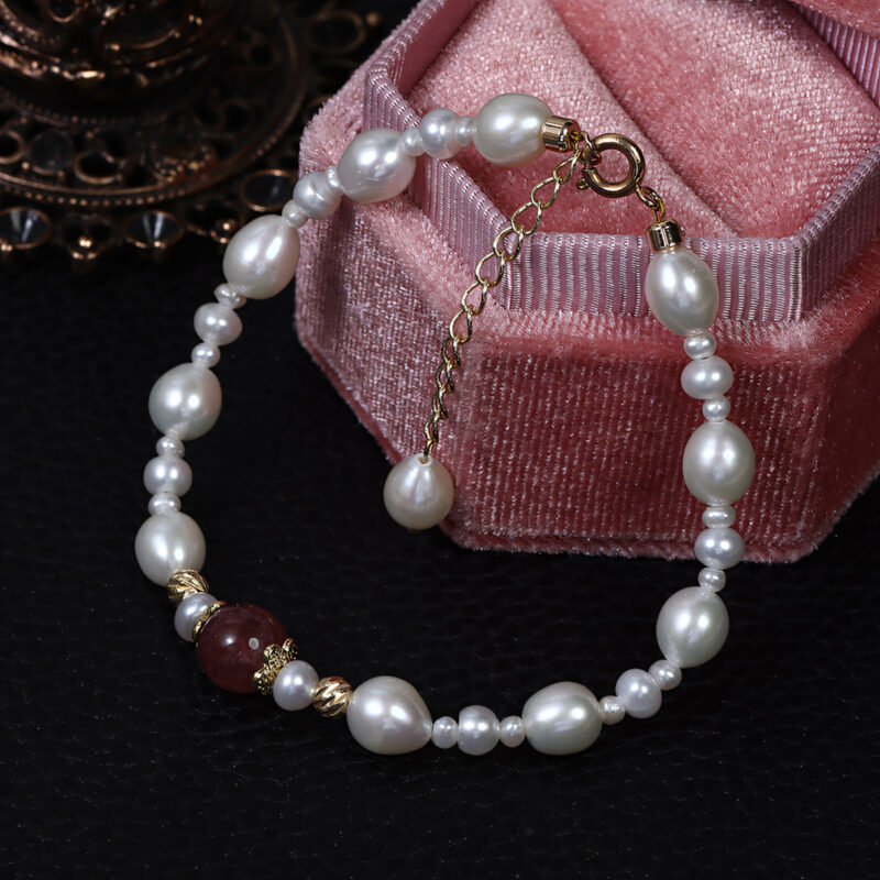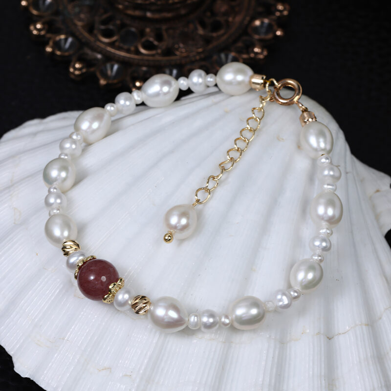 Armband aus Erdbeerkristall und Süßwasserperle