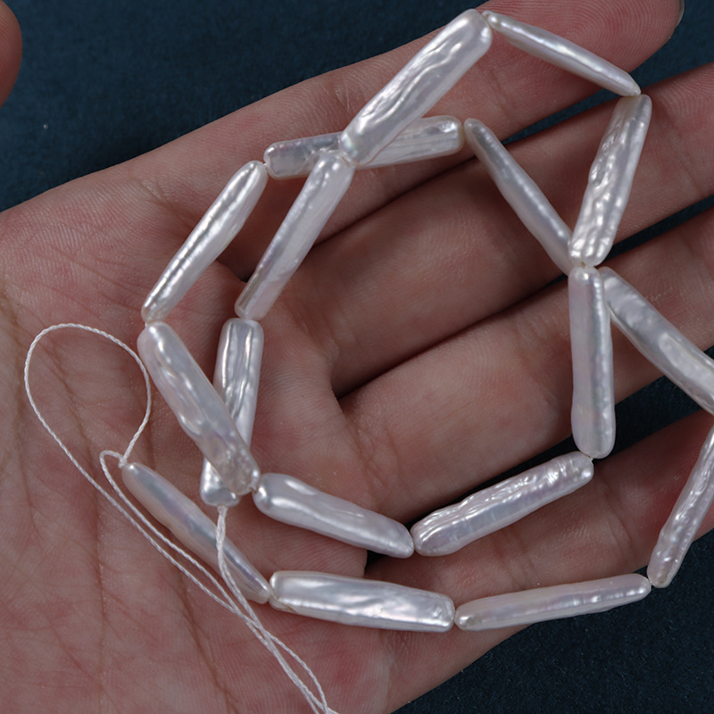 Fotorezension von 8-9 mm großen, natürlichen, gewundenen Süßwasserperlen in Reiskornform