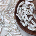 Fotorezension von 8-9 mm großen, natürlichen, gewundenen Süßwasserperlen in Reiskornform