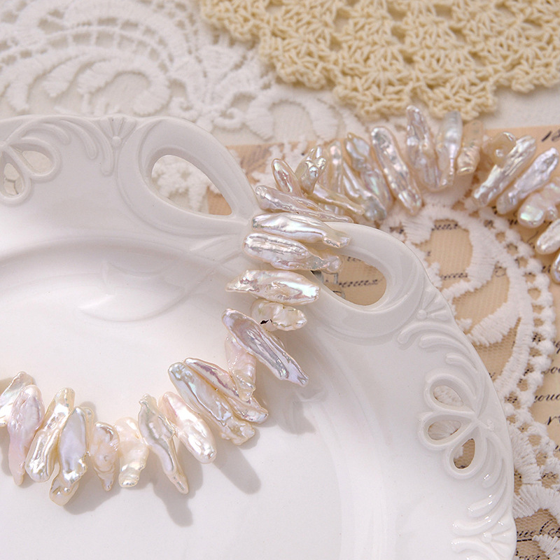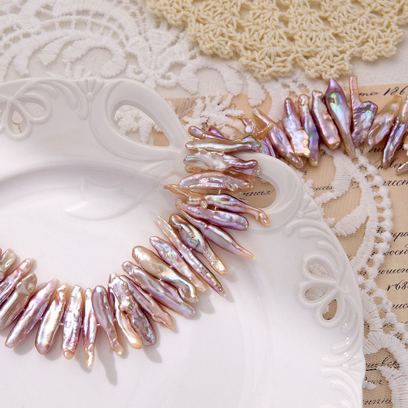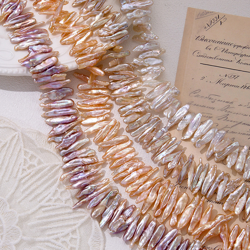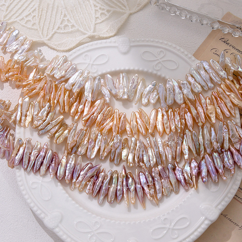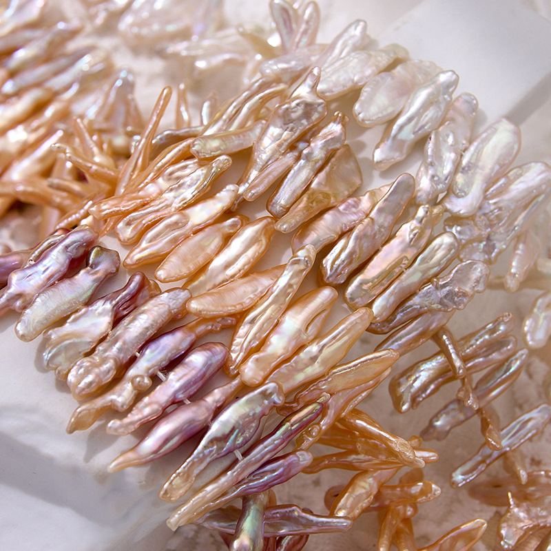 Hochwertige, unregelmäßige Biwa-Naturperlen aus Süßwasser mit mittlerem Loch