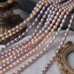Fotorezension von 8-9 mm großen, natürlichen, gewundenen Süßwasserperlen in Reiskornform