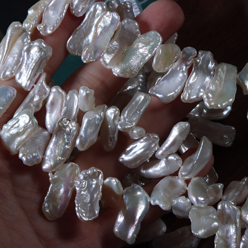 Seitlich gebohrte Biwa-Barockperlen aus Natur für DIY-Schmuck
