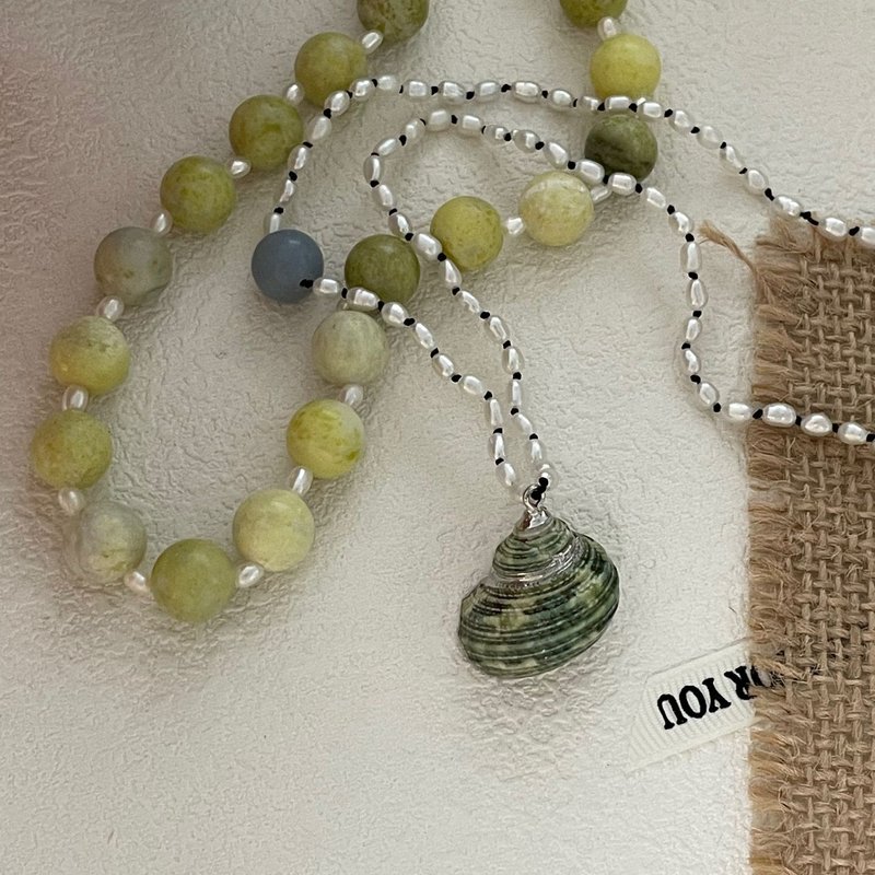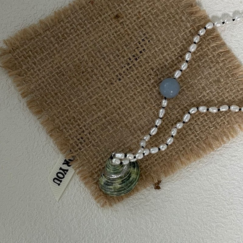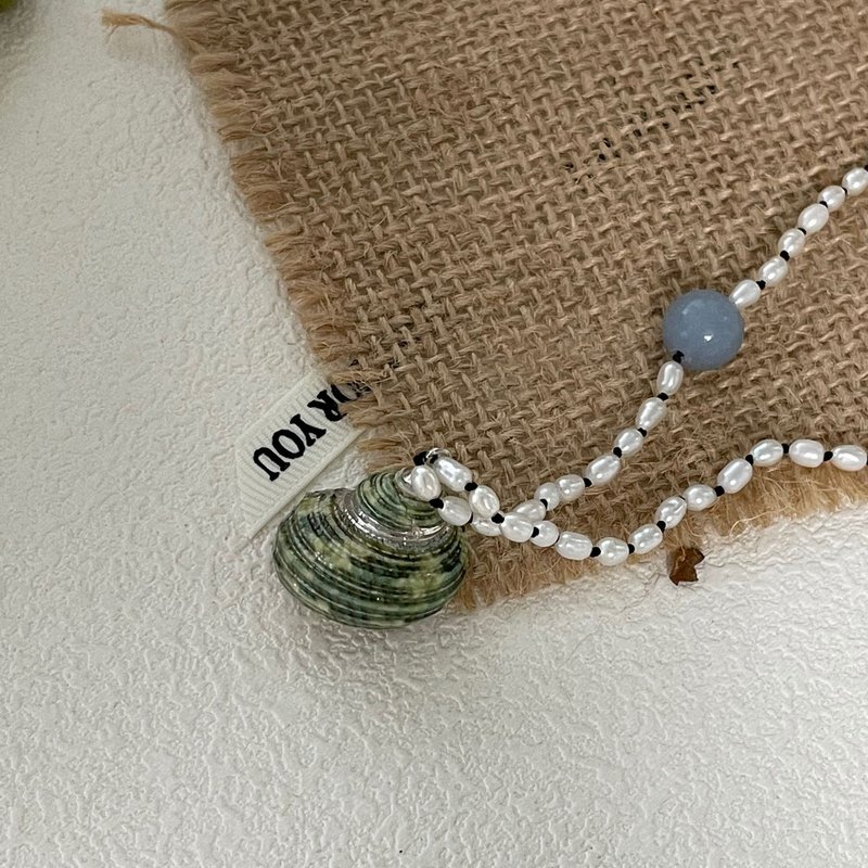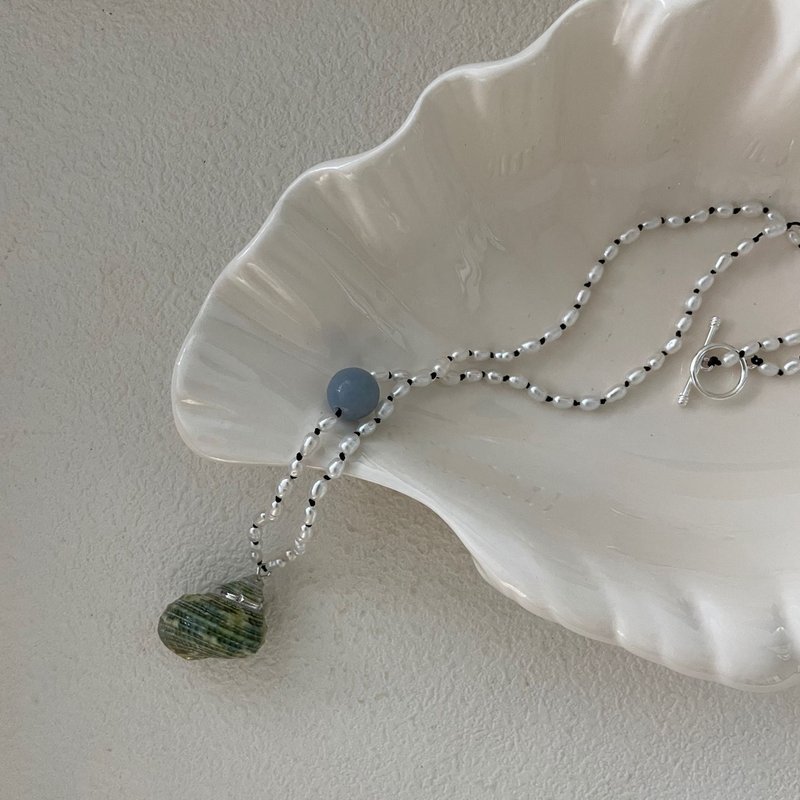 S925-Silber-Süßwasserperlen-Halskette-mit-Muschel-und-Stein-Anhänger