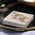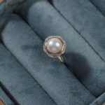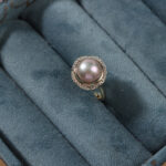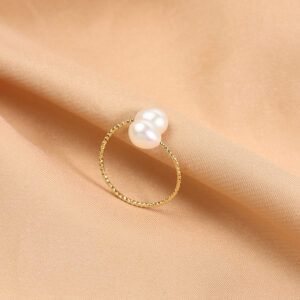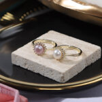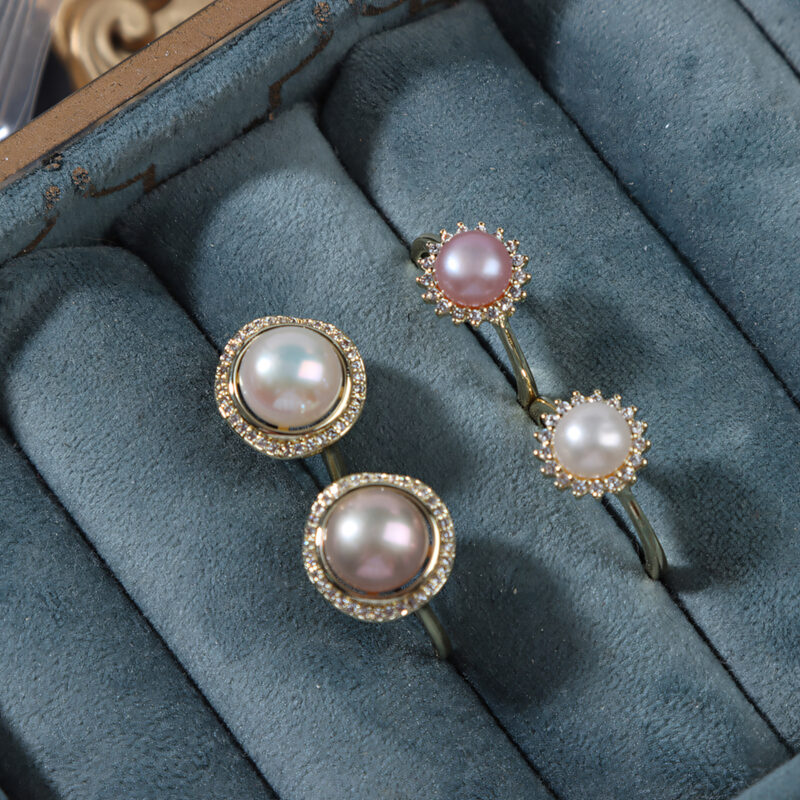 Verstellbarer Perlenkuppelring mit Zirkon-Halo