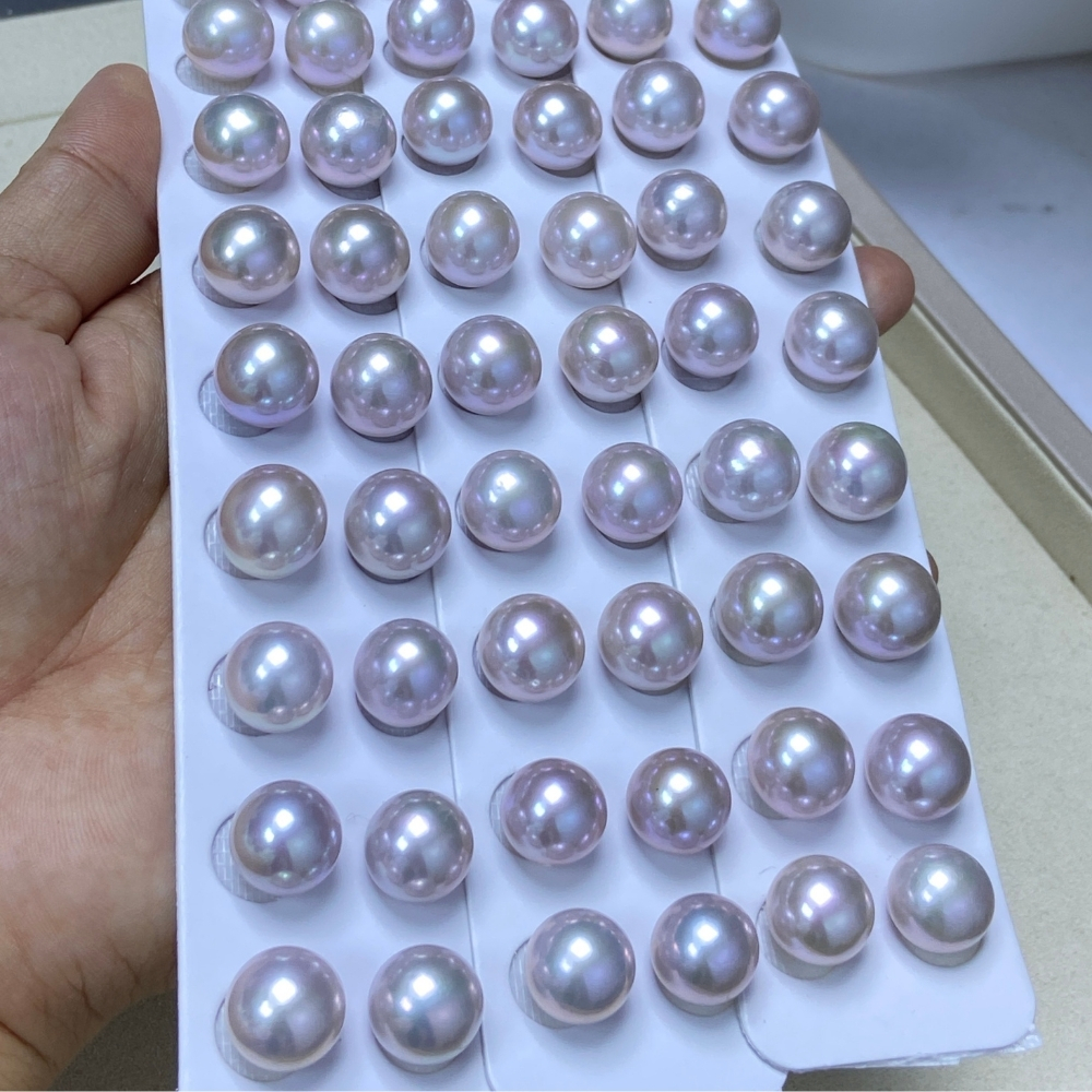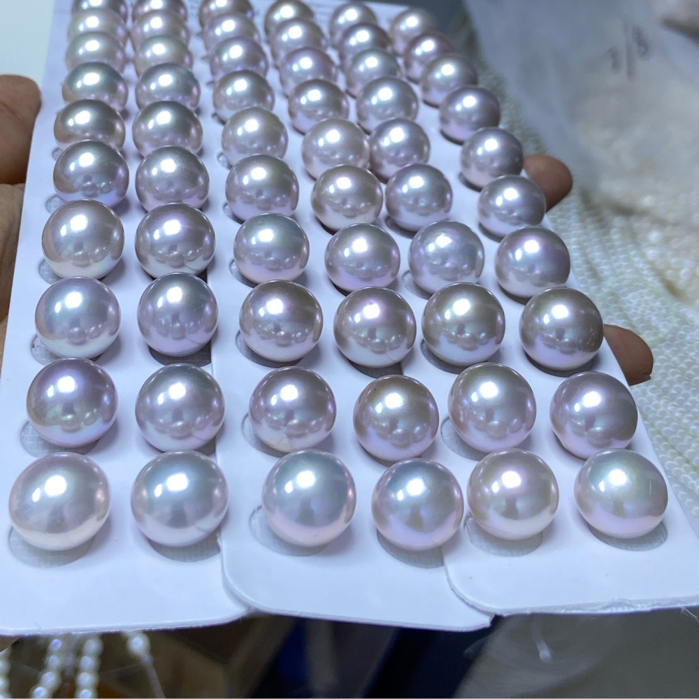Natural freshwater pearls sized around 12-13mm in a round shape, featuring a soft white-pink overtone with strong luster and smooth surfaces. Sold as a matched pair, they show excellent symmetry and minimal blemishes. These pearls are ideal for making statement earrings or elegant pendant jewelry.