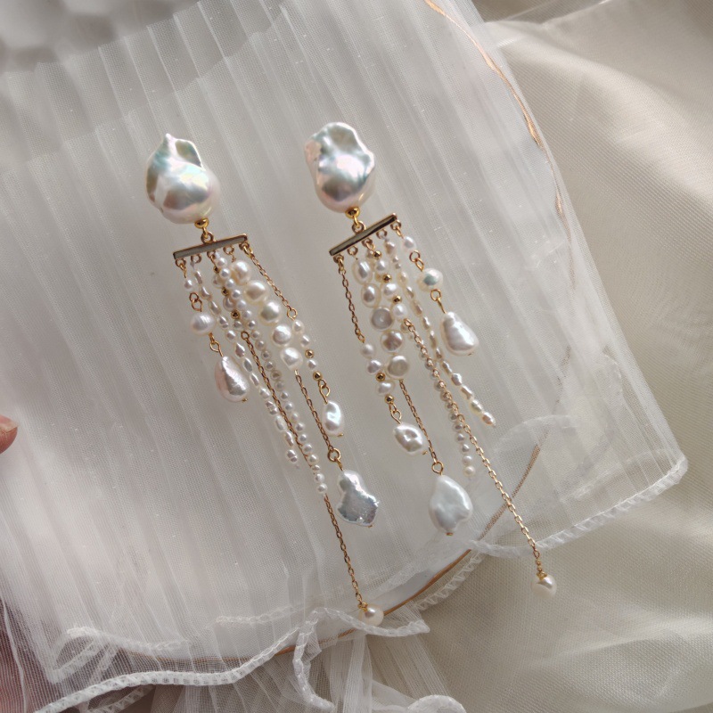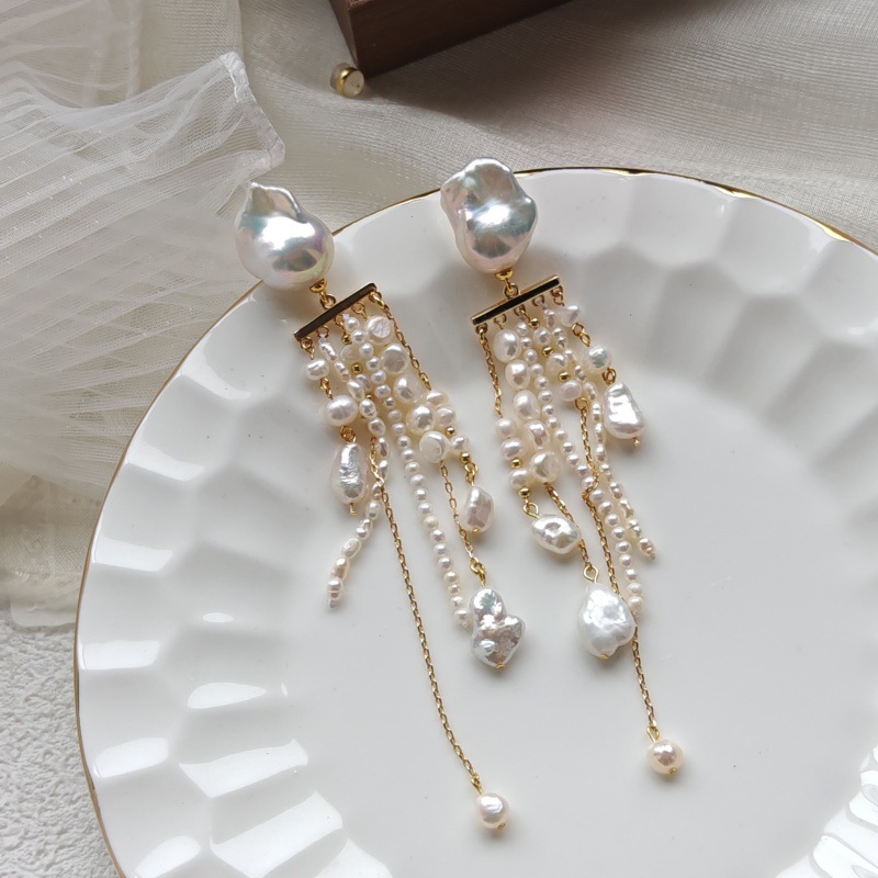 Gold-Plated-Baroque-Freshwater-Pearl-Tassel-Earrings