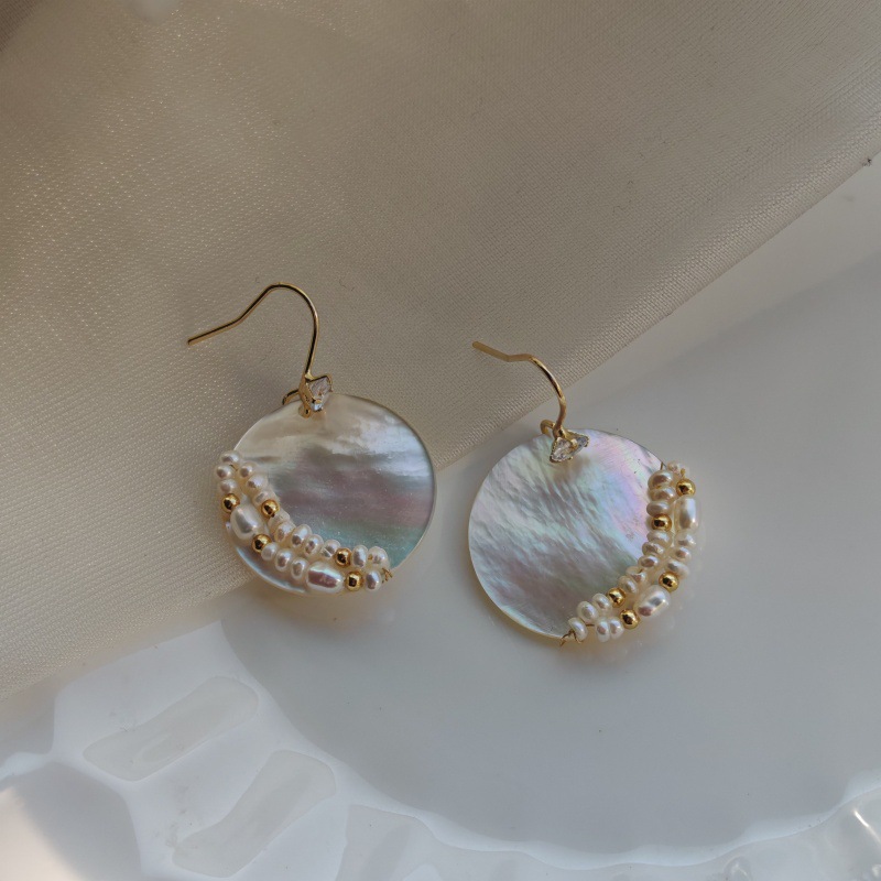 Handmade Mother Of Pearl Freshwater Pearl Disc Earrings