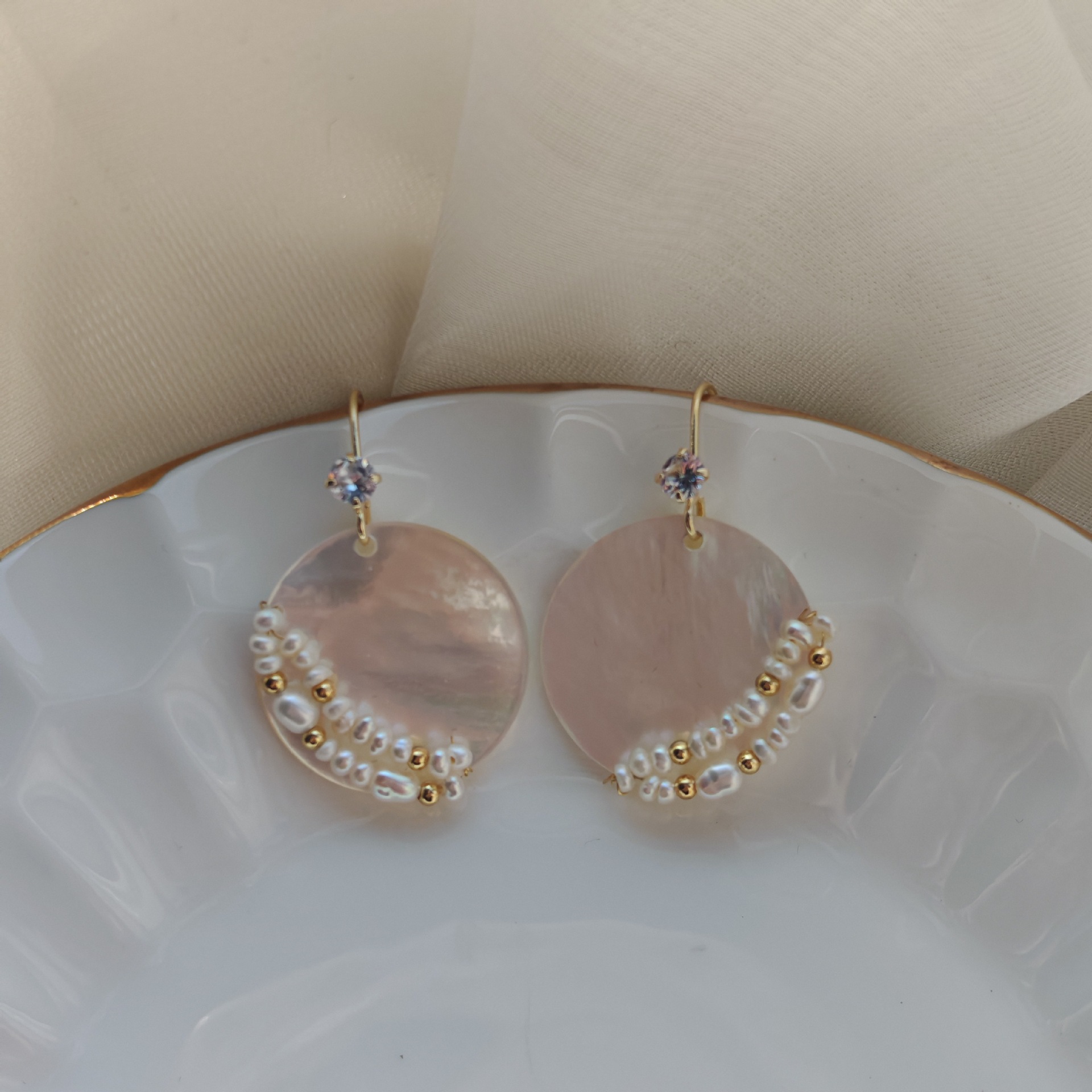 Handmade-Mother-Of-Pearl-Freshwater-Pearl-Disc-Earrings