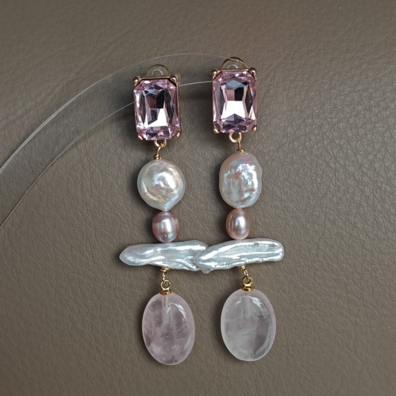 Post Rose Quartz Mixed Pearl Crystal Earrings