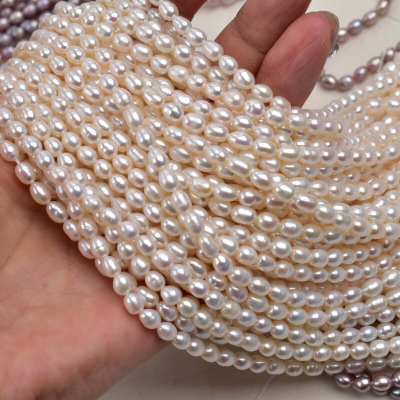 Perlas de agua dulce de arroz morado blanco natural de 4-5 mm