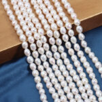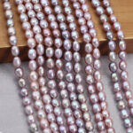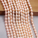 Reseña fotográfica de perlas de agua dulce de grano de arroz natural enhebradas de 8-9 mm