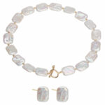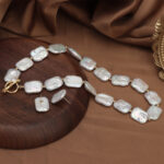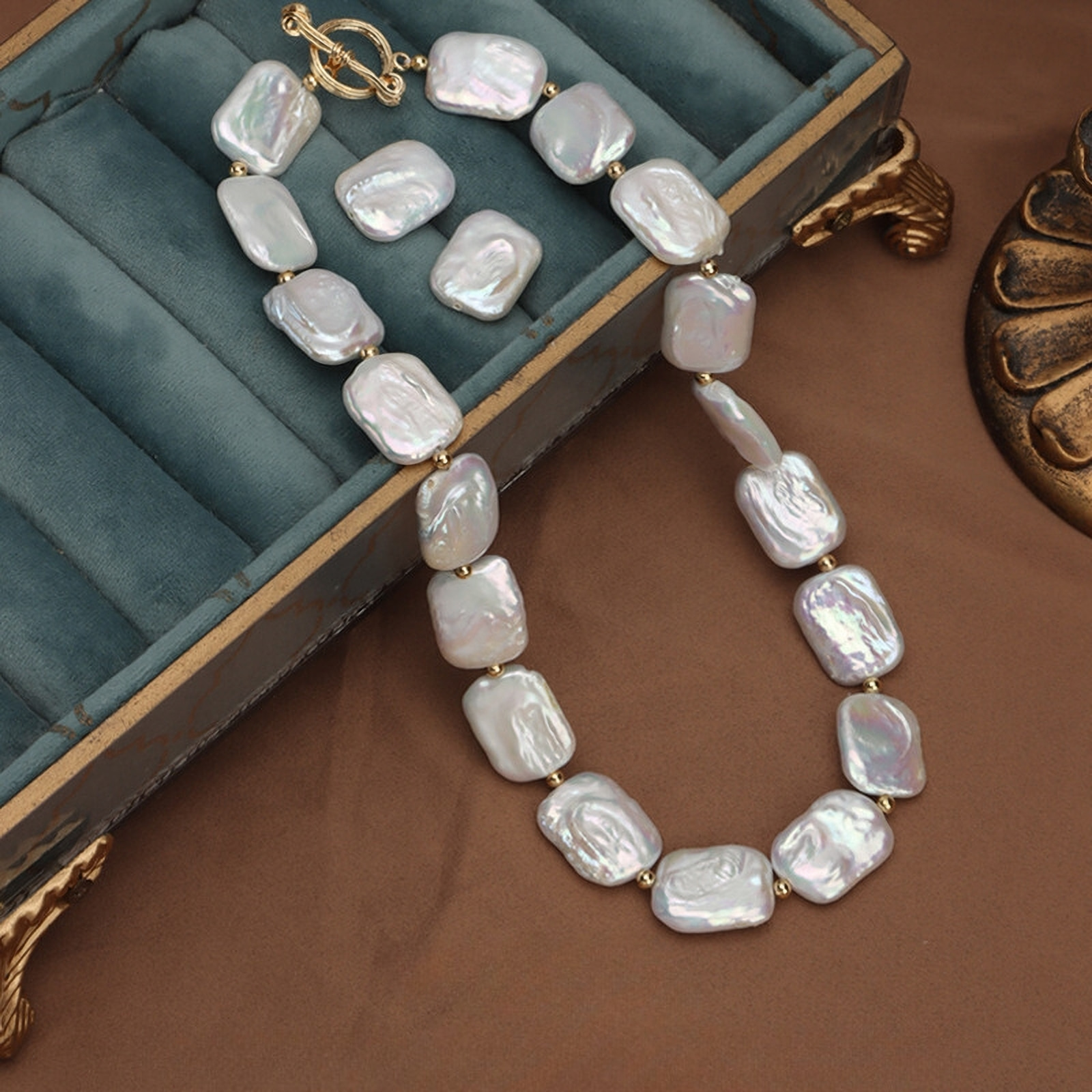 Conjunto de collar de perlas cuadradas con cuentas doradas