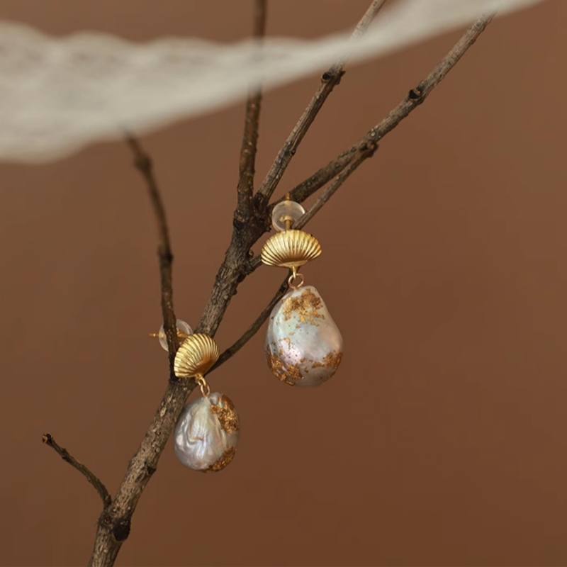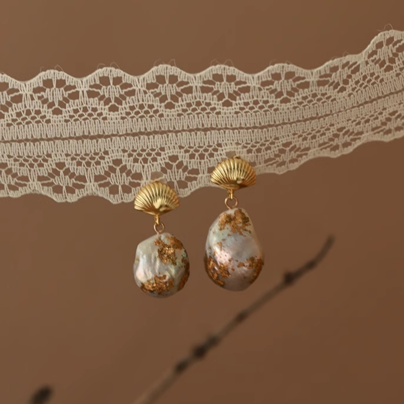 Pendientes colgantes de concha de perla con perlas barrocas