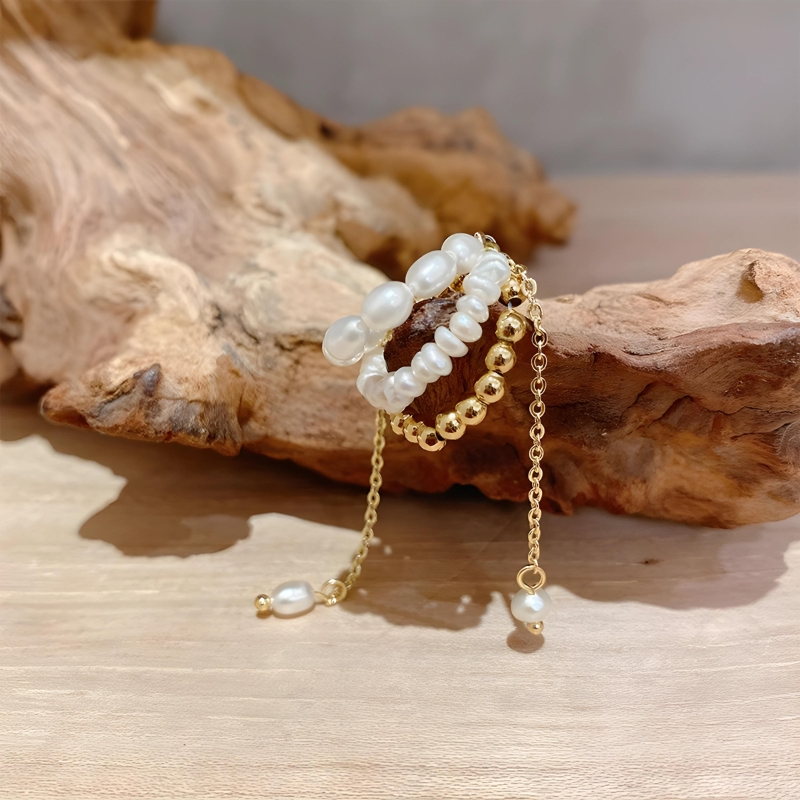 Reseña fotográfica del collar de perlas de agua dulce flotantes de plata S925 bañado en oro