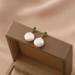 Pendientes planos de perla barroca con pedrería