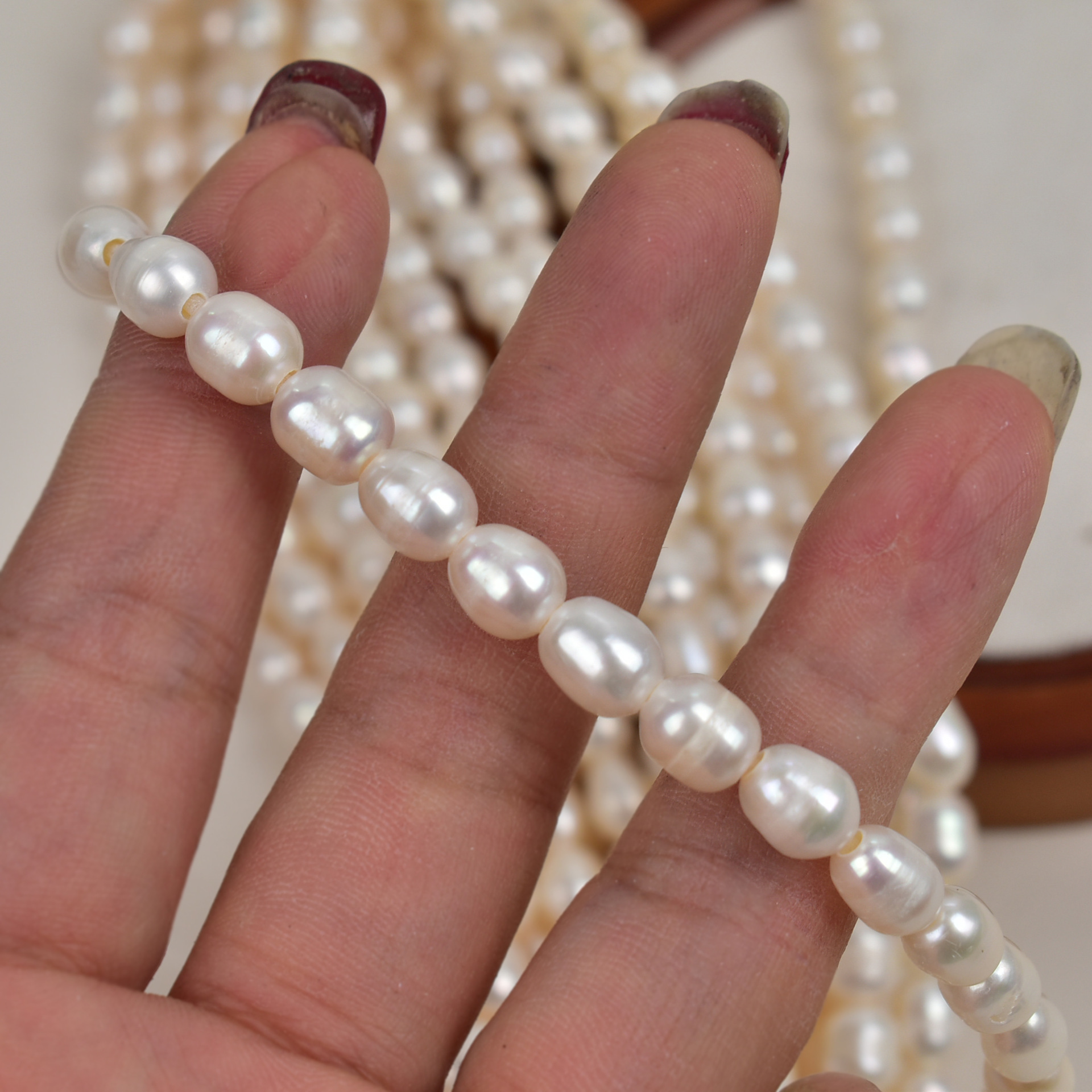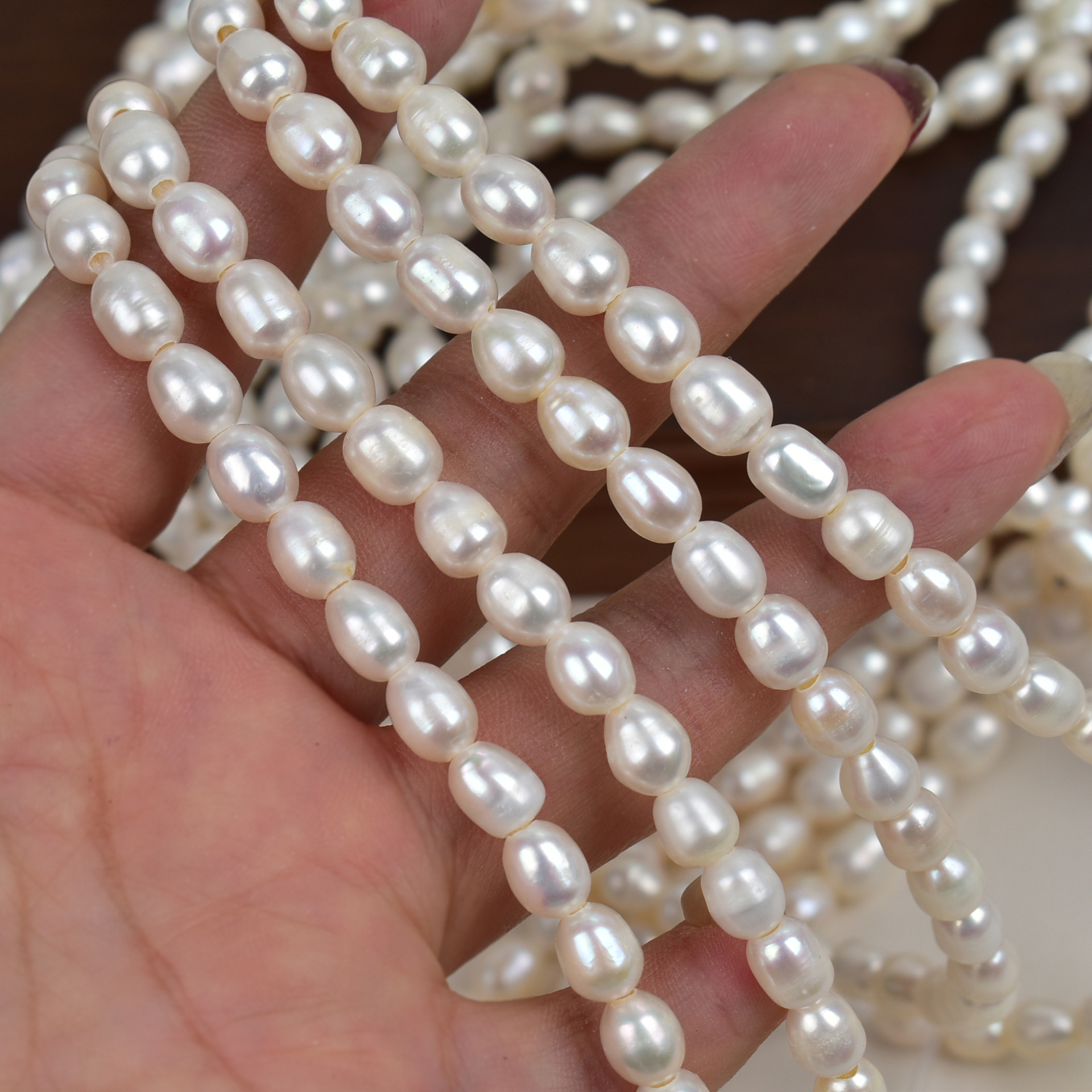 Perlas muy brillantes, pero con aspecto natural. Fáciles de trabajar.