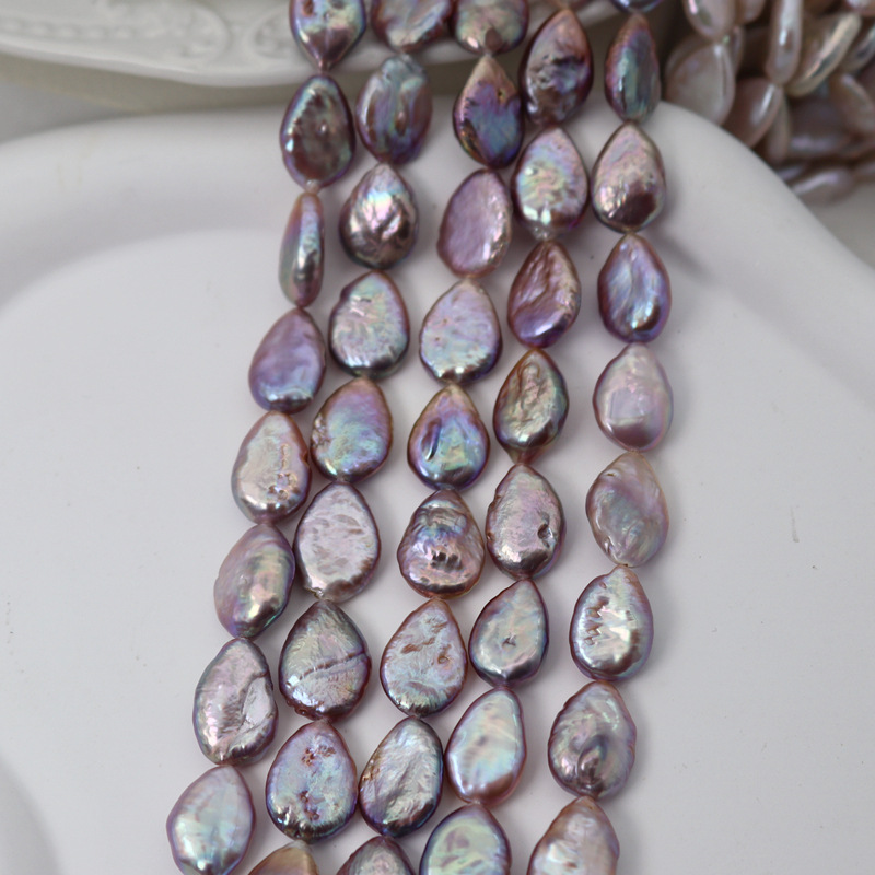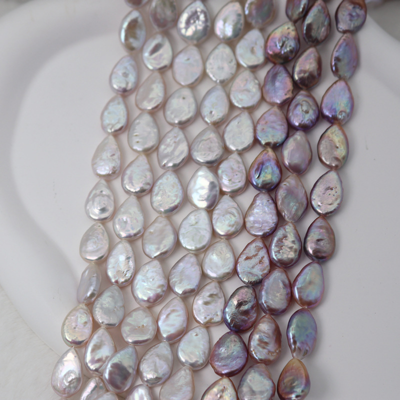 Perla de agua dulce natural plana en forma de lágrima de colores de 10 mm