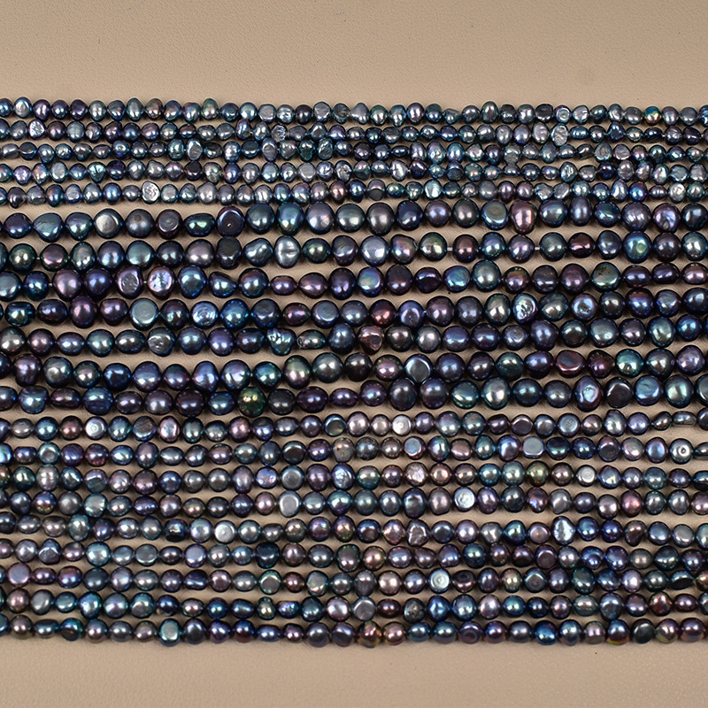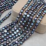 Perles d'eau douce noires teintées vert paon de 4 à 9 mm