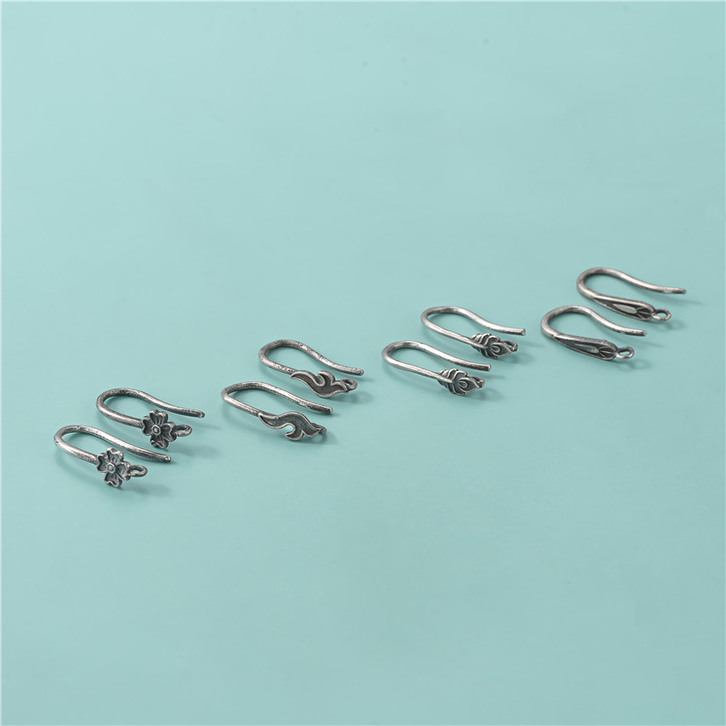 Boucles d'oreilles à crochets en argent sterling S925, motif trèfle à quatre feuilles vintage