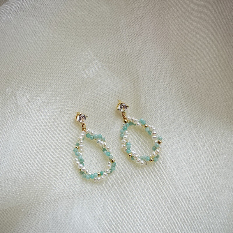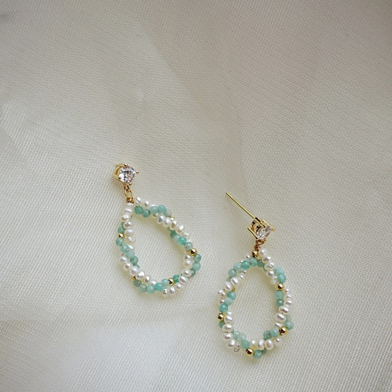 Boucles d'oreilles en argent S925, perles d'eau douce et aigue-marine