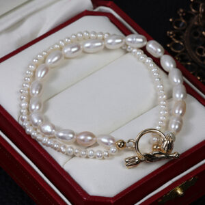 Cet élégant bracelet est orné de perles d'eau douce brillantes et d'un fermoir magnétique en or 18 carats orné de strass. Alliant style et praticité, ce fermoir magnétique est idéal pour les détaillants souhaitant proposer des accessoires alliant élégance et praticité.