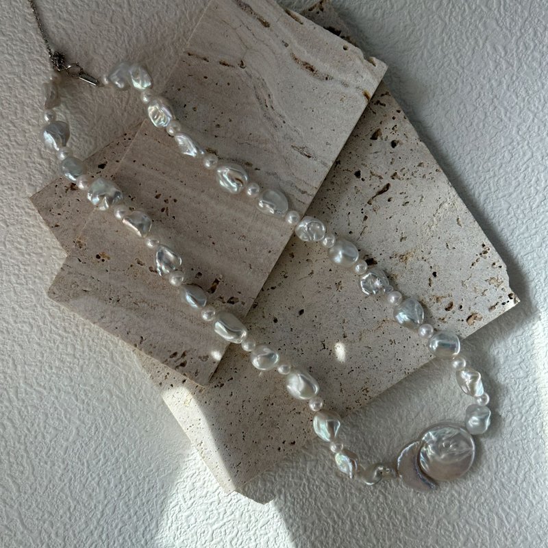Collier de perles baroques avec pendentif rond