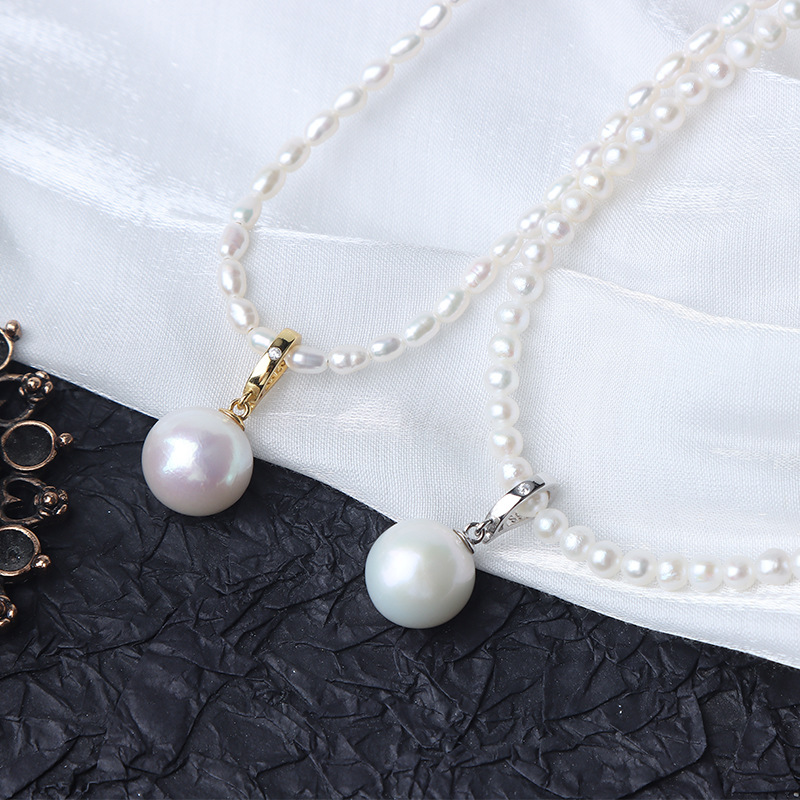 Pendentif en argent S925 avec perle d'eau douce ronde Edison de 11 à 12 mm