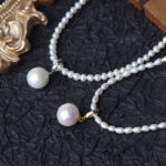 Présentation photo d'un collier de perles d'eau douce blanches naturelles rondes de 4,5 à 5 mm